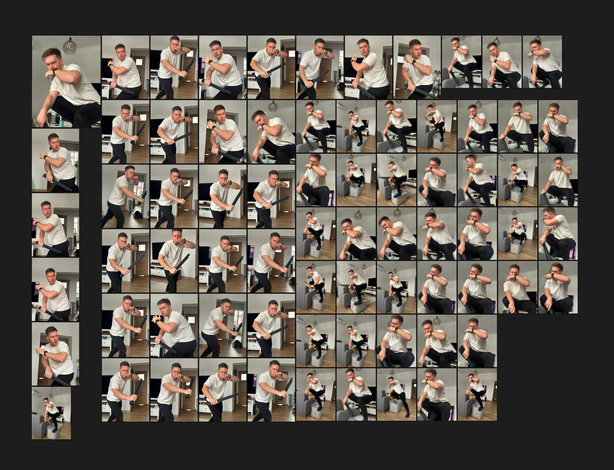 «Hice una sesión de fotos sencilla y divertida conmigo haciendo diferentes movimientos y gestos. Sentir el movimiento en mi propio cuerpo me ayudó a ver cómo se desplaza el peso y aparece la tensión de forma natural en medio de la acción, lo cual fue crucial para evitar la rigidez y encontrar poses que parecieran vivas y naturales»."