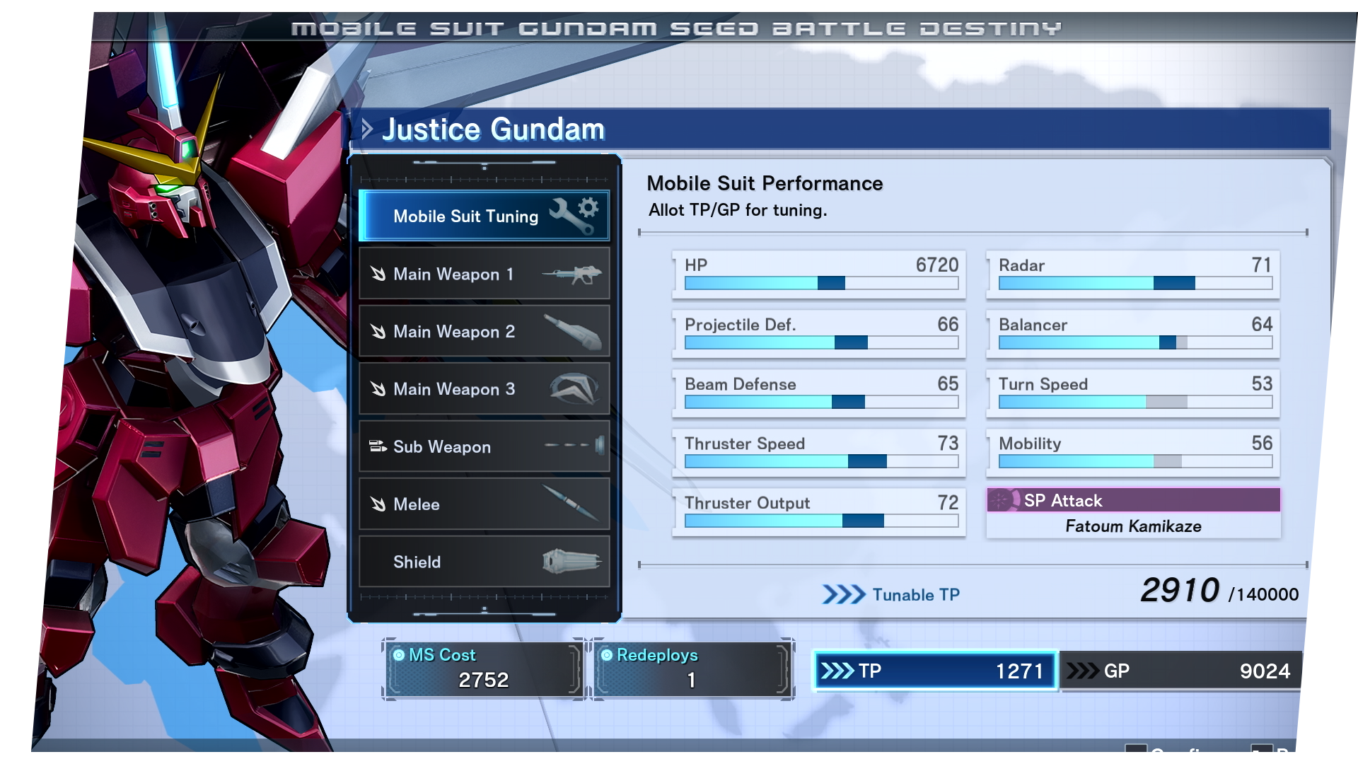 Fortalece tus Mobile Suits y armas desde el menú rediseñado de la IU.